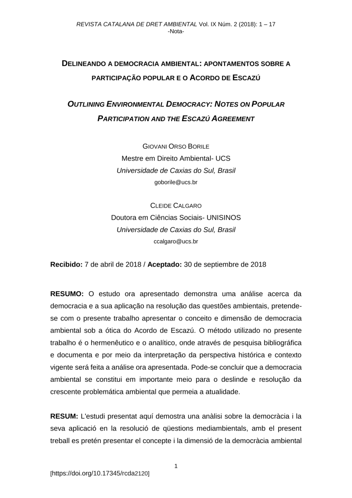 Este artículo examina el papel del Acuerdo de Escazú en el fortalecimiento de la democracia ambiental en América Latina, con un enfoque especial en la jurisprudencia y la participación ciudadana en Brasil. Analiza los desafíos legales para su implementación y los mecanismos para garantizar el acceso a la información y justicia ambiental.