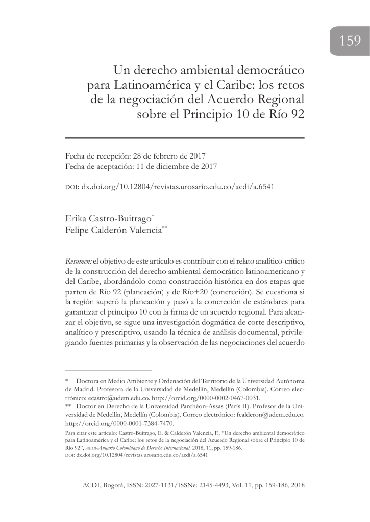 Este artículo presenta un análisis detallado sobre el proceso de negociación del Acuerdo de Escazú desde una perspectiva latinoamericana. Examina las dinámicas diplomáticas, los intereses en juego y el rol de Colombia en la formulación de compromisos sobre acceso a la información, participación pública y protección de defensores ambientales.